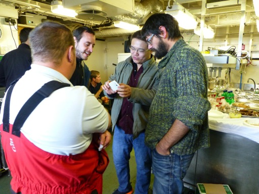 As we are nearing the end of our cruise the last CTD station was finalized late last night, and as the weather is still as calm as we would never have expected it to be in the Irminger Sea, I take some time to reflect on our journey. It is always strangely discomforting to come close to the end of a period spent so intensely working with all folks on board and that one has got to know over the course of the trip. I wonder why that is. We can look back at a very successful cruise with all and even more done than was initially planned.. The OSNAP East mooring array in the Irminger Sea has been serviced, 51 CTD stations were taken and 34 floats were released in this part of the subpolar gyre. Everyone was working so well together and the high pressure over the Irminger Sea kept intense low pressures swirling well away from us such that it some times looked like..  the Mediterranean? I appreciate life on board as we can focus on work, and do not need to worry about other usual daily business or errands. In addition though the unexpected events make it certainly more fun, like an occasional Tuesday evening that turns into a fun party or a big group of killer whales passing by, or the surprising clear view of Greenland being still 60 nm away. I feel like by now we are well into the routine of working together, data handling, and organization that it feels odd to abandon all that now.. and that it suddenly comes to an end. I do realize most people are ready to get off the ship, particularly our dear colleagues from SAMS who had already been working on RV Pelagia for 3 weeks during leg 1. And surely the students who perhaps spend their first weeks ever at sea and probably are happy to go home and have a bit of summer holiday in a warmer place. Luckily due to the good weather we were ahead of schedule and could take some time to do a little bit of fishing on our way back in to port.. resulting in not too bad catches either.. Apart from being grateful to our science team, students and technicians, my big thanks for making this cruise successful go to all the hard working deck crew, engineers, captain and officers. It has been a real pleasure sailing with ya all.